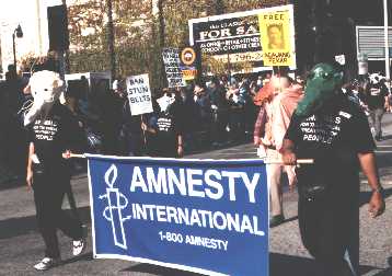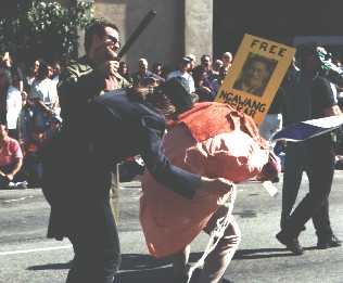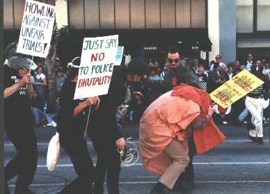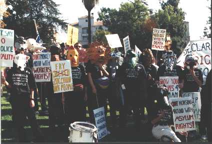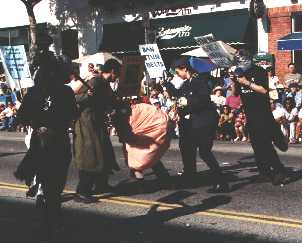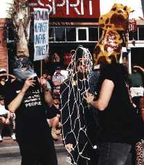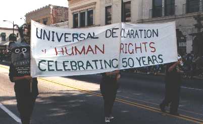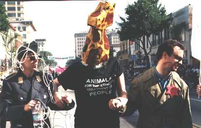 The Pasadena chapter of Amnesty International participated in the 22nd Annual Doo-Dah parade held on November 22, 1998 as "Animals for the Ethical Treatment of People." Chapter members masquerading as animals brought the news to parade-goers that this December 10 is the 50th anniversary of the United Nations Universal Declaration of Human Rights. This statement of fundamental rights and freedoms is the basis of Amnesty's work to protect people around the world from human rights violations.