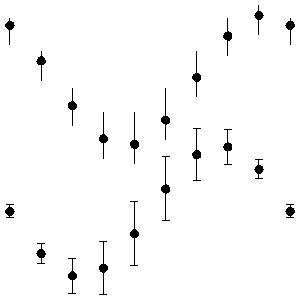 errorbar(xx, yy, dy) plots error bars at (xx,yy+-dy).