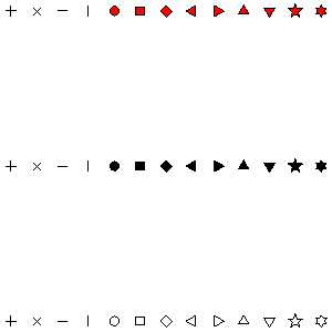 < > ^ v: left / right / up / down pointing triangles The fill style has no effect on +|x|-|| marks; spine is like brush for circle.