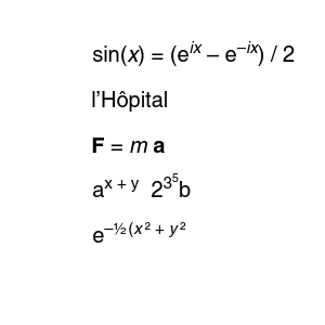 qp.text('a^x~+~y ~ 2^3^5 b', dy=90)