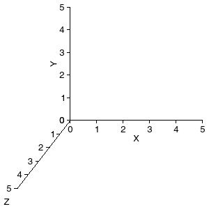 zaxis(title, ticks, proj) where proj=(x_z, y_z), draws a z-axis projected onto the paper plane by