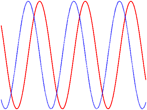 So far, we plotted a very basic graph of a sinusoid. Now, we will combine two plots, and we will need to make them look visually distinct. This is done using the pen command: