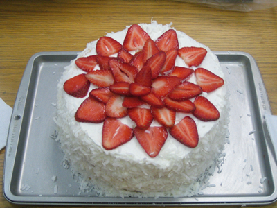 Marisa's cake features stacked strawberries