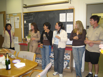 Jackie holds Kate, Mi Hee, Fangwei, Katy, and Stemp rapt