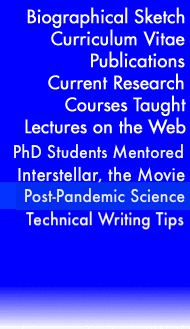 Biographical Sketch Curriculum Vitae Publications Current Research Courses Taught Lectures on the Web PhD Students Mentored Interstellar, the Movie Post-Pandemic Science Kip Tech Writing Tips