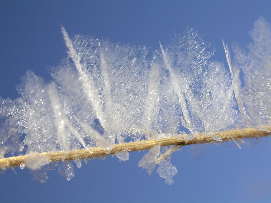 vapor condenses directly into ice, then you get snowflakes and frost (see the Snowflake Primer).